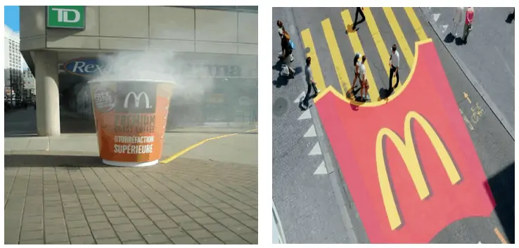 McDonald’s street crosswalk of french fries is an excellent example of street marketing.
