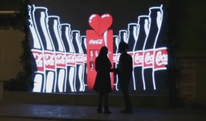 As part of their Happiness Machine campaign, which included installing happiness machines that pass out free drinks and other Coca-Cola merchandise in various crowded destinations like colleges, malls, Coca-Cola installed a love machine in an Istanbul mall. This machine gave free Coca-Cola cans to any couple who proved their love.