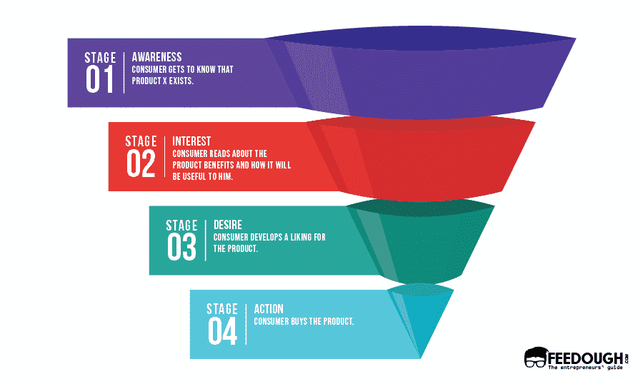 After you have determined your goals, comes the question of how to achieve these goals to tap into your target audience. One of the ways to strategically tap into your customer’s minds to influence them would be to follow the Awareness-Interests-Desire-Action (AIDA) model, also called a purchase funnel.