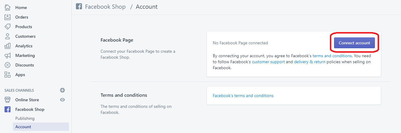 Connect your appropriate Facebook account and follow the prompts to allow Shopify to connect with your Facebook page.